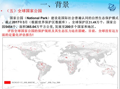 保護(hù)區(qū)評(píng)價(jià),目前開展的是全球國(guó)家公園保護(hù)現(xiàn)狀和生態(tài)壓力評(píng)估正在做工作,首先為什么要干這項(xiàng)工作,加強(qiáng)國(guó)家公園保護(hù)狀態(tài)和生態(tài)壓力定量化評(píng)估,有助于人類了解地球上最美麗的生態(tài)環(huán)境資源的性質(zhì)和數(shù)量以及人類自身對(duì)這些資源產(chǎn)生了什么的壓力,有助于提高人類關(guān)于自然保護(hù)與持續(xù)發(fā)展的科學(xué)認(rèn)識(shí)和面對(duì)生態(tài)環(huán)境退化的應(yīng)對(duì)能力。有助于提升我國(guó)在世界上生態(tài)環(huán)境保護(hù)的地位和話語權(quán)。有助于提升我國(guó)在全球國(guó)家公園建設(shè)、生態(tài)安全維護(hù)和“一帶一路”戰(zhàn)略布局都具有重要的參考價(jià)值。通過研究世界上最好的范例,對(duì)中國(guó)國(guó)家公園體制改革試點(diǎn)、中國(guó)國(guó)家公園建設(shè)彎道超車和中國(guó)保護(hù)區(qū)事業(yè)健康發(fā)展均具有一定的借鑒意義。