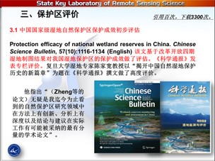 我們工作分兩部分,先是在2012年科學(xué)通報(bào)發(fā)過文章就是中國(guó)濕地監(jiān)測(cè)與評(píng)價(jià),同時(shí)把我們以前做的工作和新的工作匯到一起,一起向各位前輩報(bào)告一下。