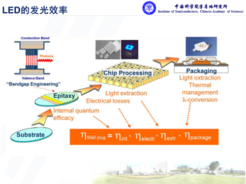 氮化鎵是直接帶隙的半導(dǎo)體材料,在光電應(yīng)用方面具有獨(dú)特優(yōu)勢(shì)?;诘壍腍B-LED對(duì)于通用照明來(lái)說(shuō),其核心問(wèn)題是發(fā)光效率。其中外量子效率主要取決于三個(gè)層面的因素,內(nèi)量子效率、光提取效率,還有封裝方面的熒光轉(zhuǎn)化等效率,而且每個(gè)環(huán)節(jié)都息息相關(guān)。