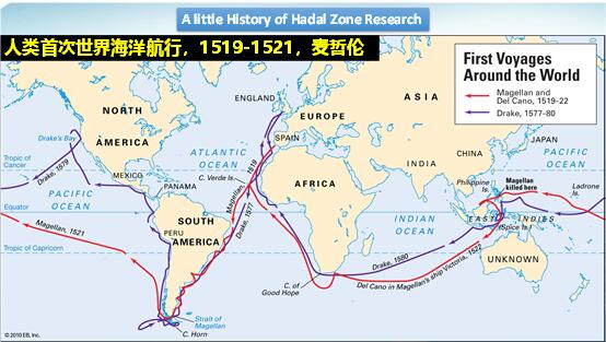 那么世界海洋最深的點(diǎn)在什么地方呢?我們國(guó)家有鄭和下西洋,大約是公元1300年左右,鄭和航海最遠(yuǎn)的路線是印度洋。而麥哲倫航海的路線是全球航行,去了好幾個(gè)大洋。在1521年,麥哲倫曾用繩子梆住重塊、讓重塊在海中下沉,然后不斷放繩子的辦法測(cè)量海洋的深度。在馬里亞納海溝區(qū)域,麥哲倫的繩子沒(méi)有放到底,他認(rèn)為馬里亞納海溝最深,但不知具體數(shù)字。