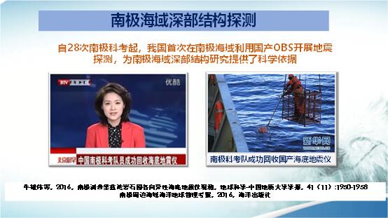 在南極地區(qū),我國(guó)有二處陸上地震臺(tái)站。在第28次南極科考時(shí)投放了海底地震儀,過(guò)了一年,在第29次南極科考船去那片海域回收時(shí),因那片海域結(jié)冰,沒(méi)法回收。根據(jù)設(shè)計(jì),海底地震儀最大留海時(shí)間為一年,大家都擔(dān)心失掉這兩臺(tái)儀器了??上驳氖?,又過(guò)了一年那片海域已經(jīng)沒(méi)有冰了,在回收時(shí),海底地震儀竟然浮到海面,這是在海底記錄時(shí)間最長(zhǎng)的一次試驗(yàn)。也為南極海域深部結(jié)構(gòu)研究提供了科學(xué)依據(jù)。