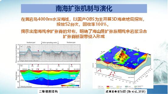 現(xiàn)在世界上能夠研制萬(wàn)米級(jí)海底地震儀的國(guó)家就是日本和中國(guó)。日本海底地震儀的壓力艙采用的材料是陶瓷材料,而我們國(guó)家采用的是玻璃材料。在2016年,我國(guó)在馬里亞納海溝的水深7731米做過(guò)一條地震測(cè)線。在2017年在萬(wàn)米以下的水深做過(guò)二條地震測(cè)線進(jìn)行觀測(cè),這是世界上第一個(gè)也是第一次在萬(wàn)米水深利用主動(dòng)源做地震觀測(cè)并能回收的國(guó)家,我們做的第二條測(cè)線是跨過(guò)了海溝最深的地方。我們還第一次把海底電磁場(chǎng)儀放入萬(wàn)米海底進(jìn)行海底電磁場(chǎng)研究,也獲得成功。