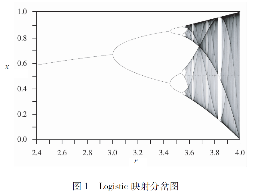 那混沌又是什么呢?混沌就是動力學(xué)系統(tǒng)在某些參數(shù)下產(chǎn)生的一種現(xiàn)象,以Logistic映射為例,當(dāng)r>3.57時(shí)會發(fā)生混沌行為。那混沌行為有什么特點(diǎn)呢?簡單來說,在混沌狀態(tài)下你會發(fā)現(xiàn)映射隨時(shí)間演化的結(jié)果并不呈現(xiàn)某種周期性,同時(shí)還會發(fā)現(xiàn)映射演化的結(jié)果對初值極其敏感。也就是說從不同的初值x0出發(fā),演化很長時(shí)間后,例如100萬步后,會觀察到它們的演化結(jié)果是完全不一樣的,這就叫作對初值的敏感性。另外要說明的是,Logistic映射很簡單,是一個確定性的動力系統(tǒng),但是它產(chǎn)生的混沌行為是非周期的,就像隨機(jī)結(jié)果一樣。這就很奇怪了,因?yàn)橐粋€不包含隨機(jī)因素的確定性動力系統(tǒng),當(dāng)它處于混沌狀態(tài)時(shí)它看起來就像是
