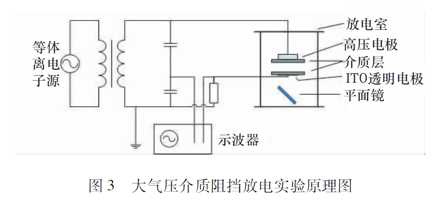我們這里研究的大氣壓介質(zhì)阻擋放電和剛才講的非線性動力學(xué)到底有什么關(guān)系呢?圖3是華南理工大學(xué)的放電實(shí)驗(yàn)原理圖。從電路的角度來看,這個實(shí)驗(yàn)系統(tǒng)有一個交流電源,這個電源連接到放電室中,放電室里有電極和阻擋介質(zhì),在實(shí)驗(yàn)中我們可以直接測量電源電壓和放電電流。