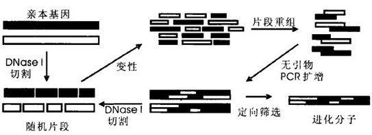 結(jié)構(gòu)改變?cè)醋园被嵋患?jí)序列的改變,氨基酸一級(jí)序列的改變?cè)醋云浠蛐蛄械母淖?,因此可以在DNA組成上做工作獲取進(jìn)化的新的功能分子。DNA組成改變的工作就是我們熟悉的“突變”。因此,隨機(jī)突變和定向篩選組成定向進(jìn)化兩大關(guān)鍵技術(shù),可以幫助我們獲取需要的進(jìn)化分子,這個(gè)過(guò)程使幾百萬(wàn)年、幾億年的自然進(jìn)化過(guò)程縮短到數(shù)年、數(shù)月、甚至數(shù)天,以滿足人們的特殊需要。